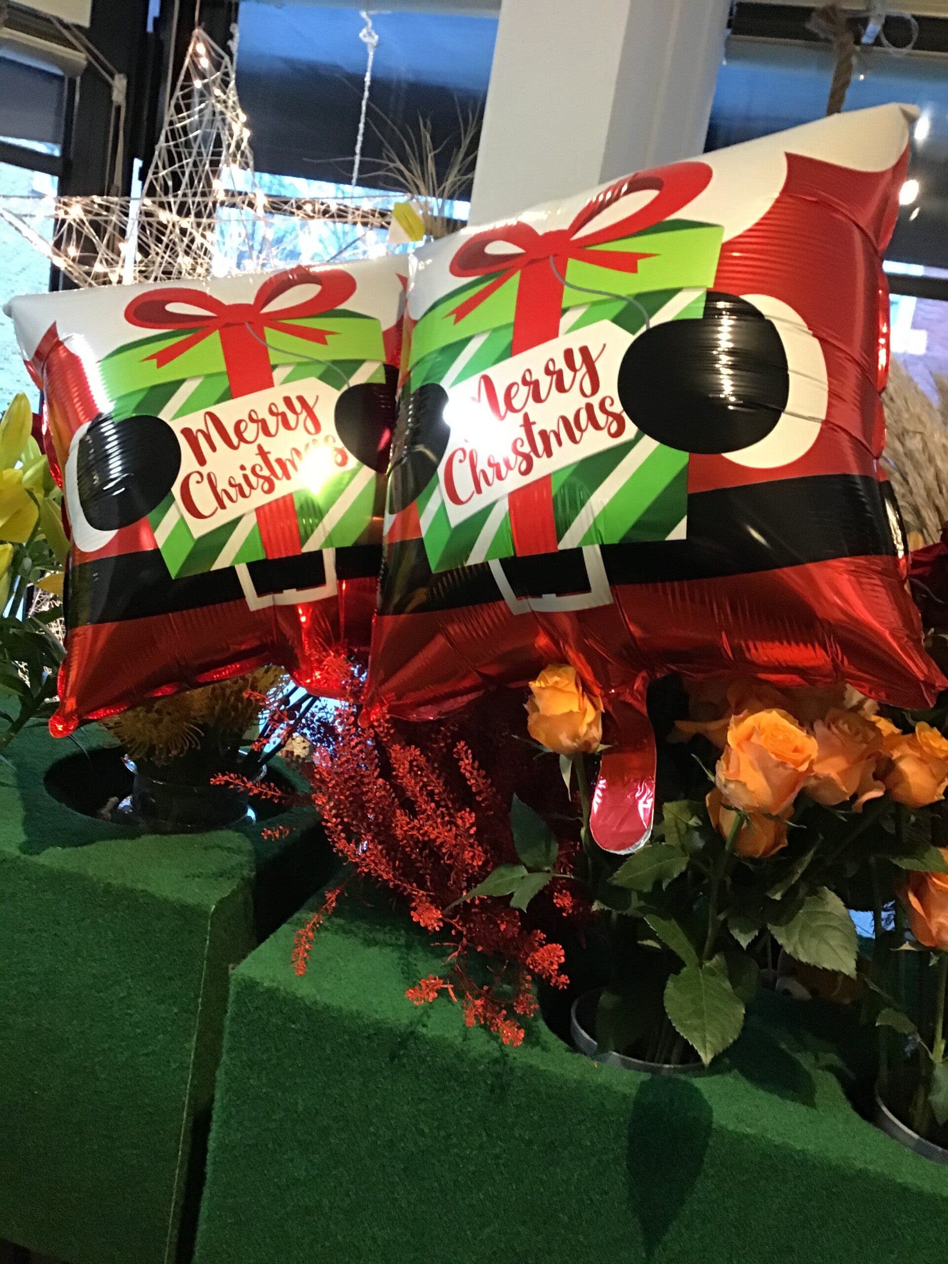 Is een groot kerstballon ,bedrukt aan 2 zijden.
