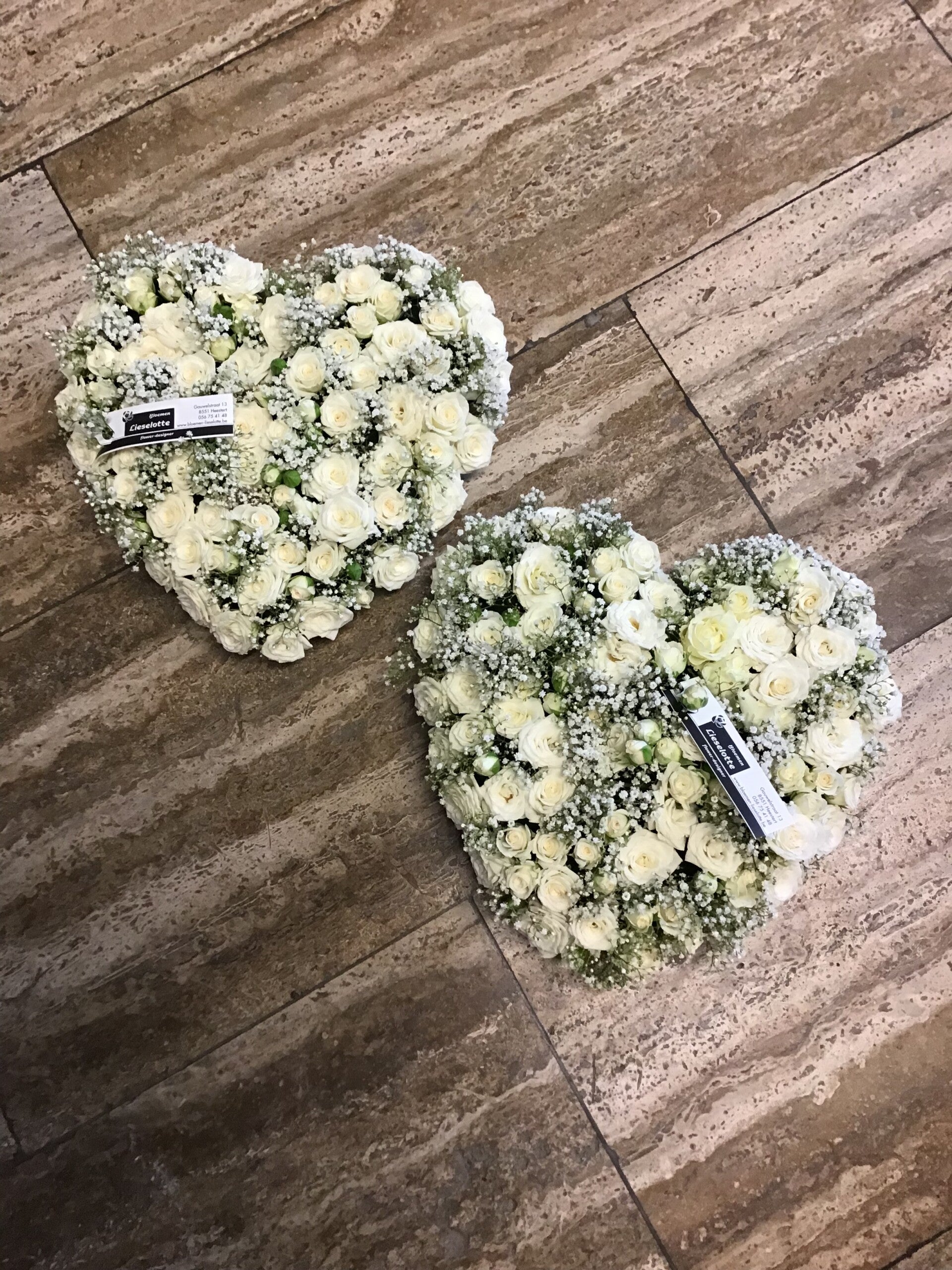 Deze ligt volledig plat en is opgewerkt met kleinere witte bloemen.